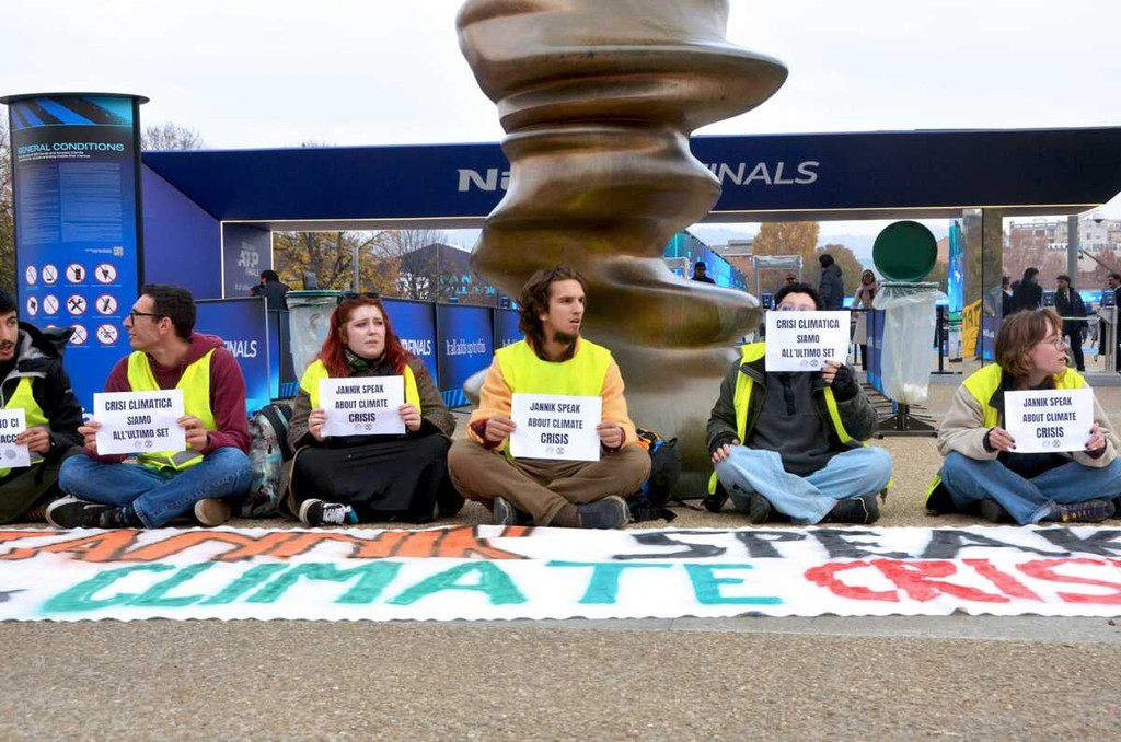 E durante il match di Jannik, in occasione dello sciopero globale per la giustizia climatica, un gruppo di persone di Fridays For Future e Extinction Rebellion si è seduto di fronte ai cancelli d'ingresso delle ATP Finals srotolando uno striscione "Sinner, speak about climate!".