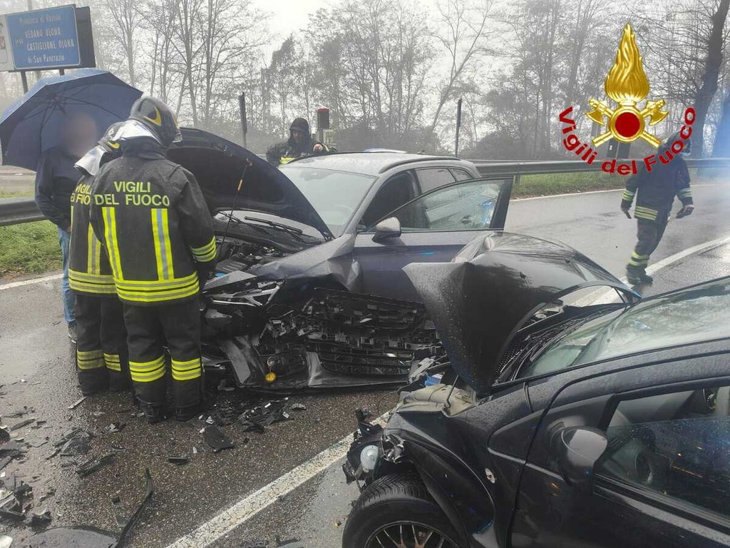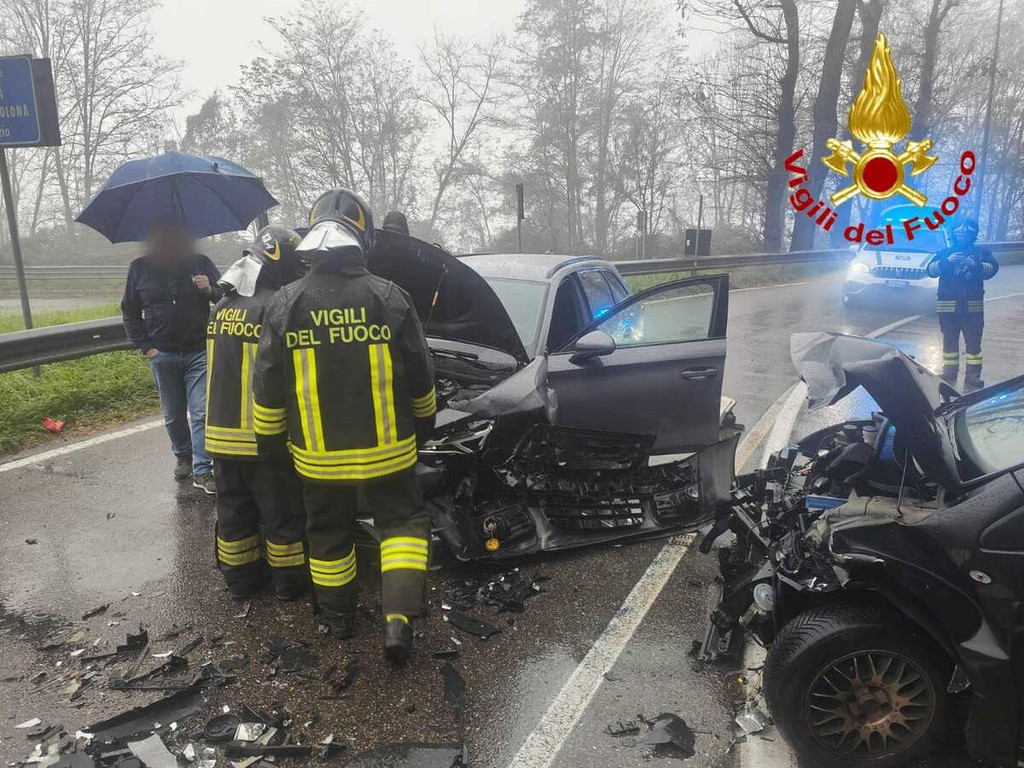 Un violento scontro frontale ha visto protagoniste due auto questa mattina poco dopo le 10 in via Marone a Vedano Olona.