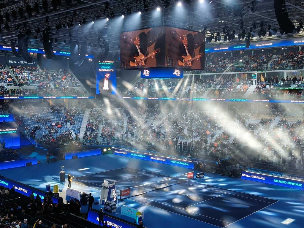 Gianni Morandi incanta l'Inalpi Arena, in vista delle finale delle Nitto Atp Finals tra Jannik Sinner e Carlos Alcaraz. Ed il cantante, con in braccio la chitarra, ha detto in vista del match: "Sono emozionato, aspettando i due grandi campioni: il nostro grande Sinner e Alcaraz, che è un grande atleta. È una sfida straordinaria: godiamoci questa finale, sperando che finisca come vogliamo noi".