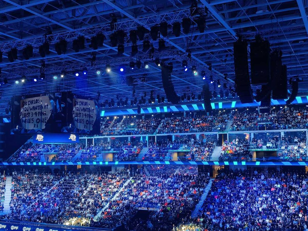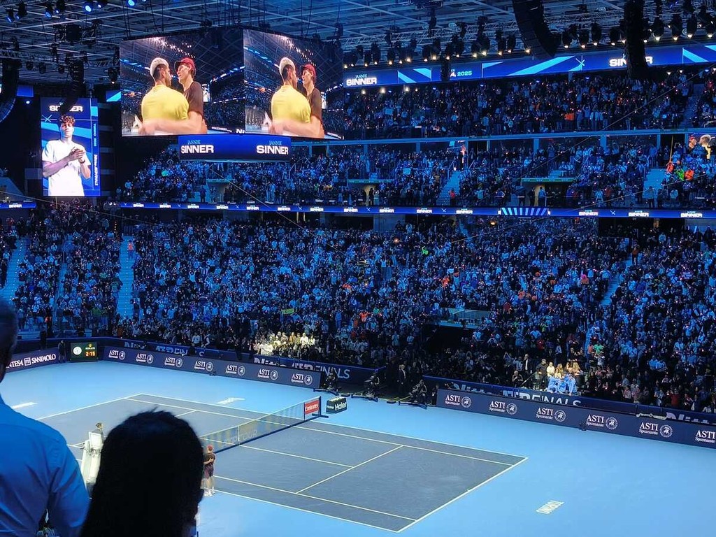 Poco prima dell'inizio del match, dal pubblico è partito il grido "Forza Jannik". E tra bandiere dell'Italia, magliette, parrucche arancioni e persone vestite da carota, gli spettatori erano tutti per Sinner. Quando si comincia, dopo l'inno di Mameli cantato da Il Volo, l'Inalpi Arena regala un colpo d'occhio spettacolare: non c'è una sola seggiola vuota in tutto l'impianto. Si parte con Alcaraz al servizio, con il numero uno al mondo che tiene la battuta senza problemi, idem la replica di Sinner, che però sull'1-2 è costretto ai vantaggi per acciuffare la parità.
