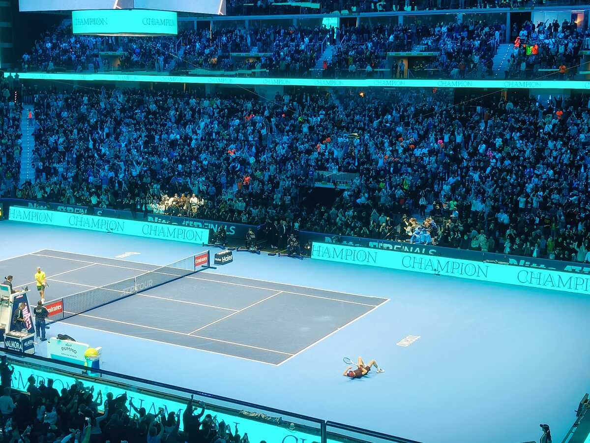Superato il rivale sul 4-3, l'italiano viene immediatamente raggiunto ma poi conquista il 5-4 tenendo la battuta a zero: ad Alcaraz, chiamato a servire per rimanere nel match, non trema il braccio, la situazione si ripete sul 6-5 quando però Sinner non sbaglia mai in risposta e al primo match point la porta a casa, complice un errore dell'avversario, al termine dell'ennesimo scambio mozzafiato. Poi è solo festa, per l'angolo di Jannik e per tutta l'Inalpi Arena.