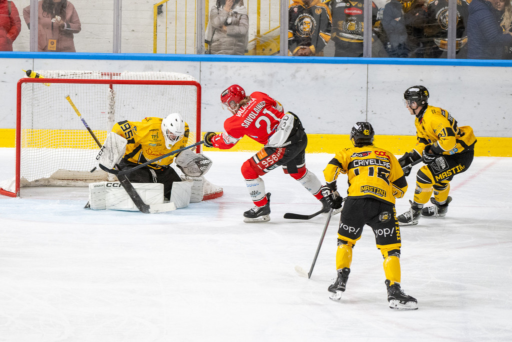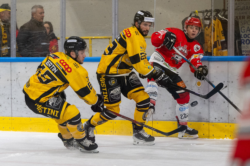 Non sappiamo cosa sia accaduto al Varese, che ha perso anche Piroso per infortunio nel secondo periodo (dopo Tilaro e Re e, ovviamente, Vanetti), ma sappiamo che comunque ci ha provato fino all'ultimo almeno per trovare il gol dell'overtime ma è come se gli ospiti, una bestia nera per il Varese, avessero qualcosa in più, sempre. Quindi non discutiamo questo successo nonostante l'uno due del terzo periodo tra Savolainen (1-3), su un altro disco perso giallonero, e dell'illusioria speranza del secondo gol varesino di Venturi liberato da Xamin. Poi anche il conto dei legni, uno in più per gli ospiti, legittima il blitz.