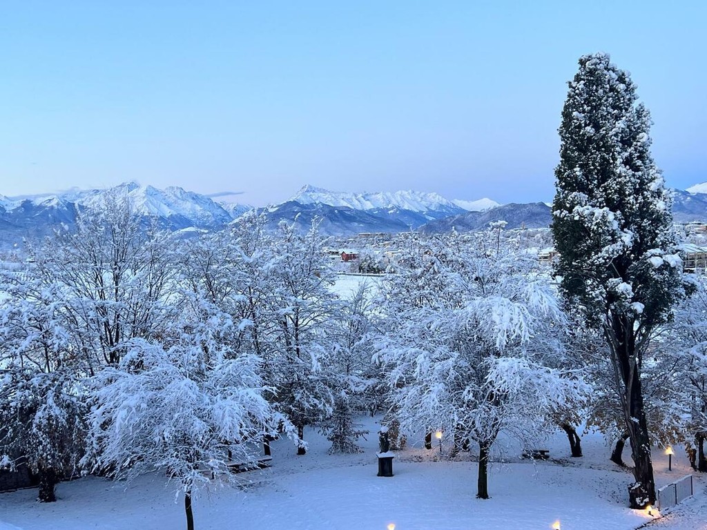 Suggestivo il paesaggio che si può ammirare questa mattina, con un elegante manto bianco a coprire alberi e case, immortalato dagli scatti a beneficio dei social.