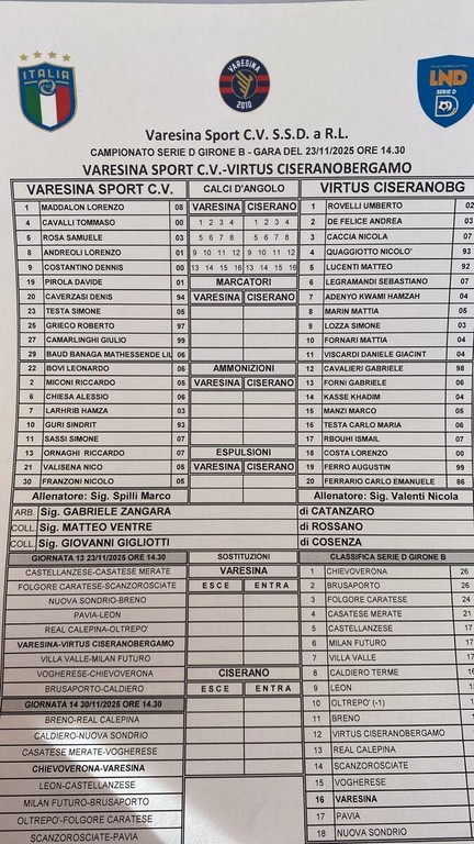 Seguiremo in diretta anche Varesina-Virtus CiseranoBergamo con i rossoblù arrivati a uno bivio-salvezza fondamentale: dopo 7 pareggi in 12 gare e una vittoria che in casa manca da quasi 300 giorni è il momento di prendersi i tre punti del rilancio. In campo per offendere riecco Costantino, Andreoli e Baud Banaga, ma c'è anche Caverzasi pronto a chiudere i varchi, mentre torna in panchina anche l'amuleto-Sassi che rientra dal lungo infortunio e simboleggia l'identità e le radici del club.