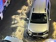 Un colpo particolarmente violento, che ha distrutto il cofano della Fiat: coinvolto nell'incidente anche il pilota di uno scooter che stava arrivando da dietro e che è caduto in seguito all'impatto.