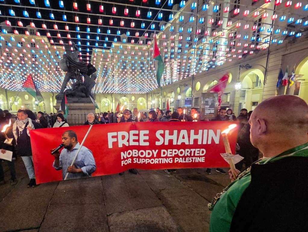 Oggi un nuovo presidio di solidarietà, questa volta davanti al comune. Qualche centinaio si sono radunati davanti a Palazzo di Città con candele, bandiere della Palestina e con i cartelli con scritto Free Shahin. Srotolato uno striscione con scritto "Nobody deported for supporting Palestine". Un'iniziativa che si è svolta contemporaneamente anche in altre città come Genova, Modena e Napoli.