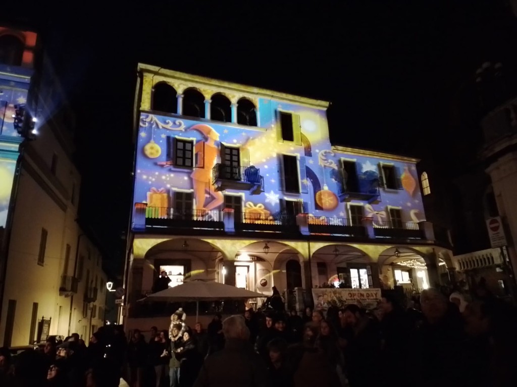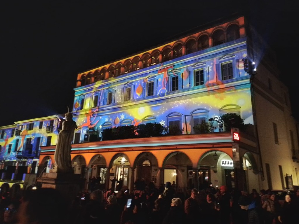 Moncalieri in luce ha acceso il Natale nella Città del Proclama. Da una settimana le luminarie avevano già illuminato vie e borgate, da strada Genova a corso Roma, da via Cavour a via Sestriere, ma nella serata di oggi, 6 dicembre, il videomapping è tornato a illuminare piazza Vittorio Emanuele, il cuore pulsante di Moncalieri, con una narrazione fiabesca caratterizzata da spettacoli di luci in cui spiccano i colori del Natale e proiezioni animate.
