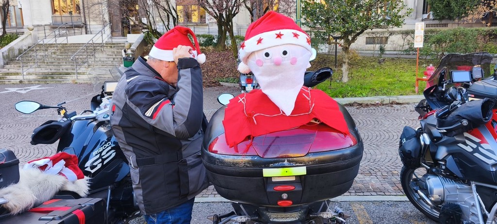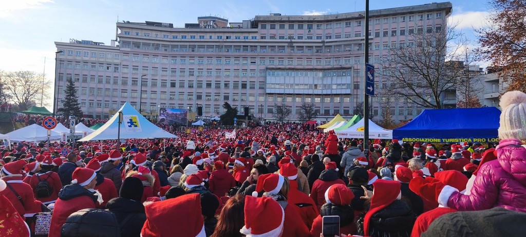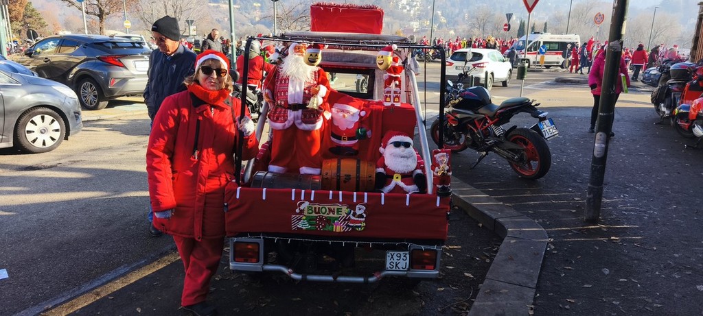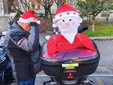 Babbi Natale in bici, a piedi, in moto e anche in canoa sono arrivati in piazza Polonia - oggi piazza Lapponia - per il tradizionale Raduno per i bambini del Regina Margherita. Babbi Natale in moto ma anche "moto Babbo Natale" addobbate a tema, cani vestiti di rosso e aquiloni con barba e baffi bianchi: la fantasia e l'originalità sono di casa, oggi.