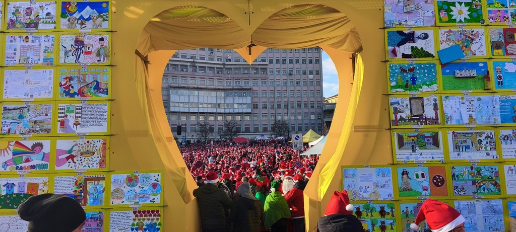 Sul palco si sono alternati gli ospiti, presentati da Nicola Virdis e Jacopo Morini, come la banda di percussioni Timbales, i cani da pet therapy di FORMA e il sindaco Stefano Lo Russo con il presidente di Regione Alberto Cirio. Super ospiti della "Fondazione Ospedale Regina Margherita" sono stati Gabry Ponte, che ha fatto ballare le decine di migliaia di Babbi Natale a ritmo di "Tutta l'Italia" e "I'm Blue", e Davide D'Urso, che ha fatto ridere i bambini con le sue imitazioni dei torinesi. Sullo sfondo della piazza, l'albero di Natale e una grande cartolina a forma di cuore realizzate grazie ai 6000 bambini piemontesi che hanno realizzato disegni e palline.