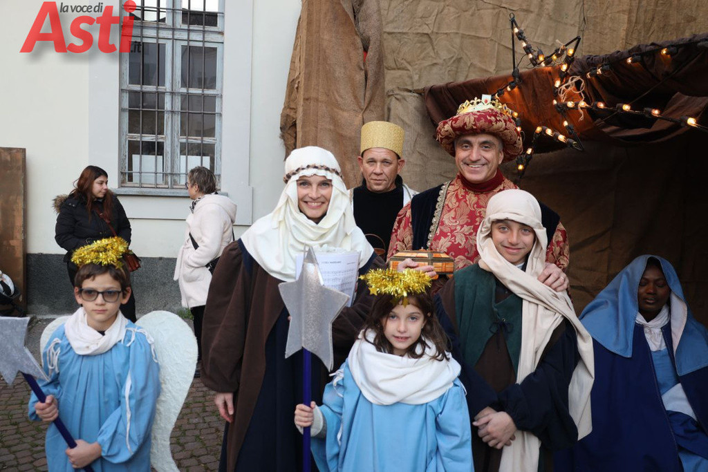 Oggi, domenica 7 dicembre il centro storico di Asti si è trasformato in un grande palcoscenico della tradizione natalizia grazie al Presepe vivente cittadino, dal titolo Il racconto della Natività in cammino nel cuore di Asti”, organizzato dalla parrocchia di San Martino con il patrocinio del Comune di Asti. Un evento che ogni anno richiama cittadini e visitatori, unendo spiritualità e folklore in una cornice suggestiva.
