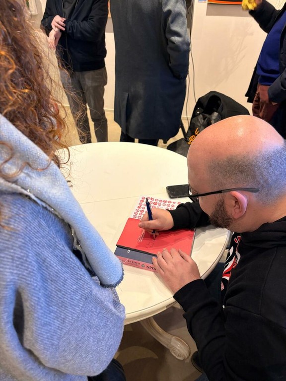 Ieri alla Libreria Ubik di Varese, Fabio Gandini, Francesco Caielli in veste di intervistatore, Max Ferraiuolo e lo stesso Bulgheroni hanno tenuto a battesimo il libro, dal formato simile a un’agenda, copertina nera con 80 ideali palloni quanti sono i personaggi tratteggiati dall’autore, e un’impostazione grafica originale, con un carattere tipografico (e le sue… caratteristiche spiegate) per ogni giocatore, scelta voluta da Patrizia Pfenninger, art director che lo ha impaginato.