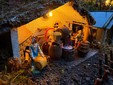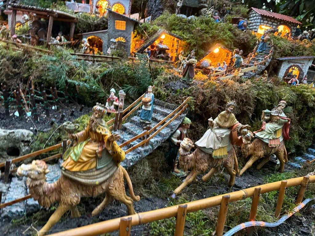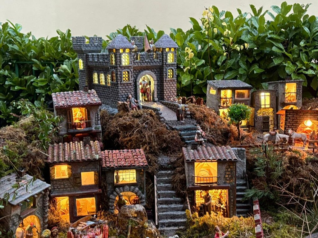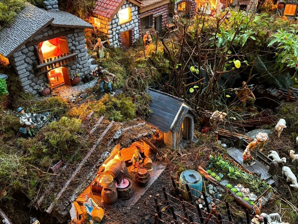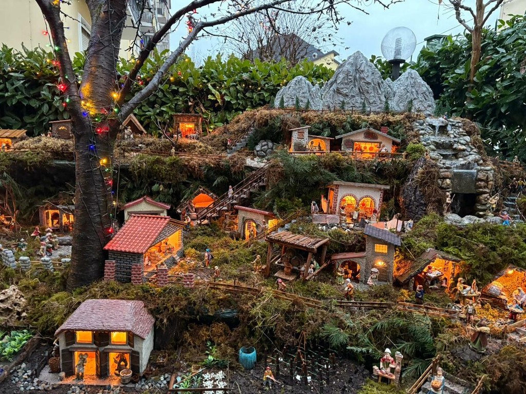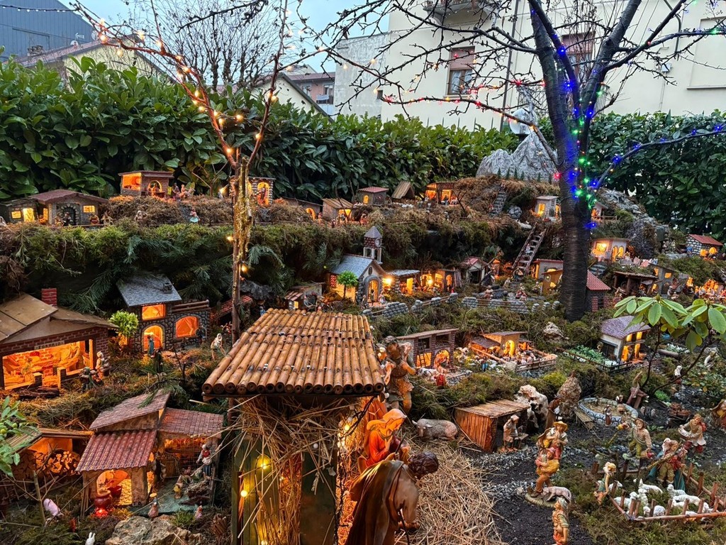 Quando tutto è pronto, le luci fanno il resto. Trecento metri di cavi illuminano il presepe, valorizzando ogni angolo, ogni tetto, ogni sentiero. I materiali sono quelli semplici di una volta: bambù, legna, muschio, pietre, terra e paglia. Nulla di artificiale, se non la pazienza necessaria a tenere insieme tutto. Così, nel cortile di via Rubiana, il Natale non è solo una festa. È un racconto che si ripete, anno dopo anno, e che continua a crescere insieme alla famiglia che lo costruisce.