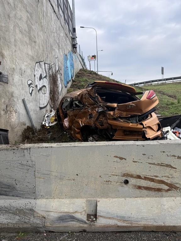 "Miracolo" di Santa Stefano sulla Tangenziale: il conducente di una macchina ha perso il controllo dell'auto all'altezza di Stupinigi, finendo fuori strada e schiantandosi contro un pilone del cavalcavia.