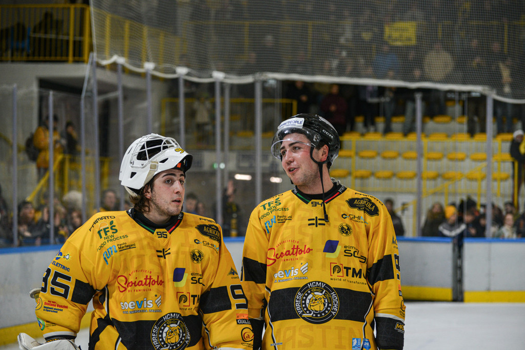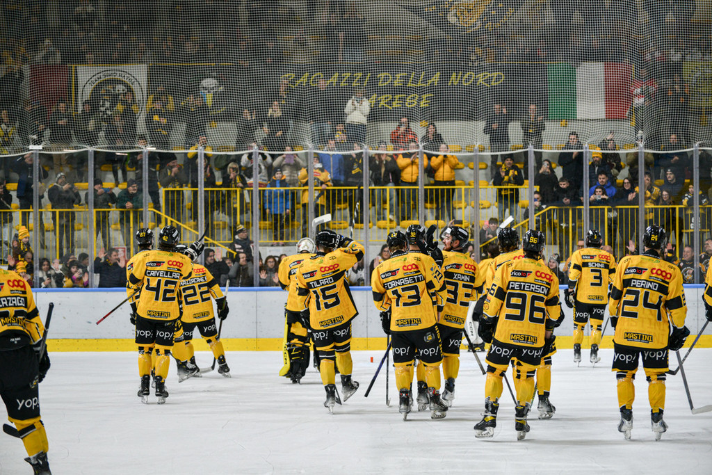 Intanto il Varese fa ciò che deve, soffrendo e colpendo, senza dare nemmeno l'impressione di dannarsi troppo l'anima: bellissimo e pesante l'1-1 di Ghiglione che fa esplodere via Albani appena 36 secondi dopo il vantaggio ospite nel primo tempo, prima del rimbalzo vincente del 2-1 di Marcello Borghi. Secondo tempo di sofferenza con il 2-2 di Majul, finché Bastille parte e va a mettere il nuovo vantaggio a modo suo (3-2). Una saetta di Makinen in power play e, poi, il siluro di Terzago chiudono i conti (5-2): concretezza, cinismo, voglia di vincere. Tanto basta. Mvp? Pubblico, la squadra e, dovendo fare per forza qualche nome, Pippo Matonti, Alex Bertin e William Makinen, supercoppia difensiva.