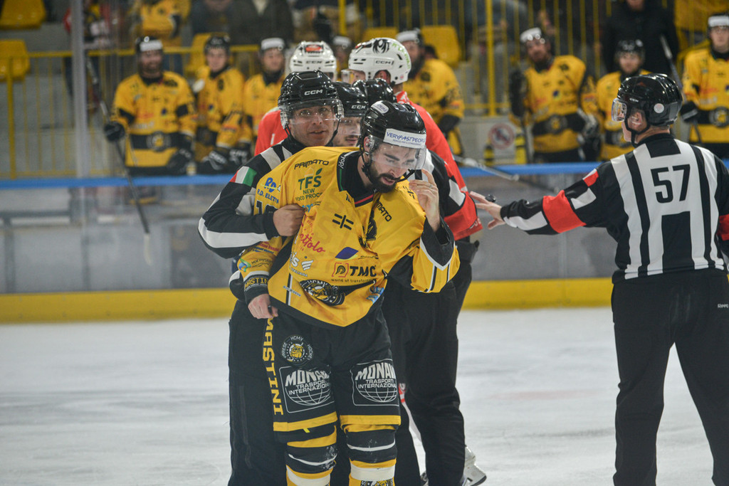 Partiamo dal fondo, e cioè dalla penalità partita del terzo tempo a Bastille e all'altoatesino Atamanchuk che priverà i gialloneri del loro attaccante canadese nella sfida di martedì ad Aosta. Segnale di carattere o, visto ciò che ci attende e che si era già sul 5-2, era evitabilissimo buttarsi sul ring a fare a pugni contro l'ucraino del Dobbiaco? Potrebbe predominare la seconda ipotesi, ma stavolta non per noi: quando diciamo sempre che dal canadese ci attendiamo fuoco, in qualunque modo esso arrivi, intendiamo anche questo duello pugilistico. Gettare i guanti sul ghiaccio e darsele fa parte anche di un modo di intendere l'hockey, è anche "cultura". Ed è, appunto, fuoco.