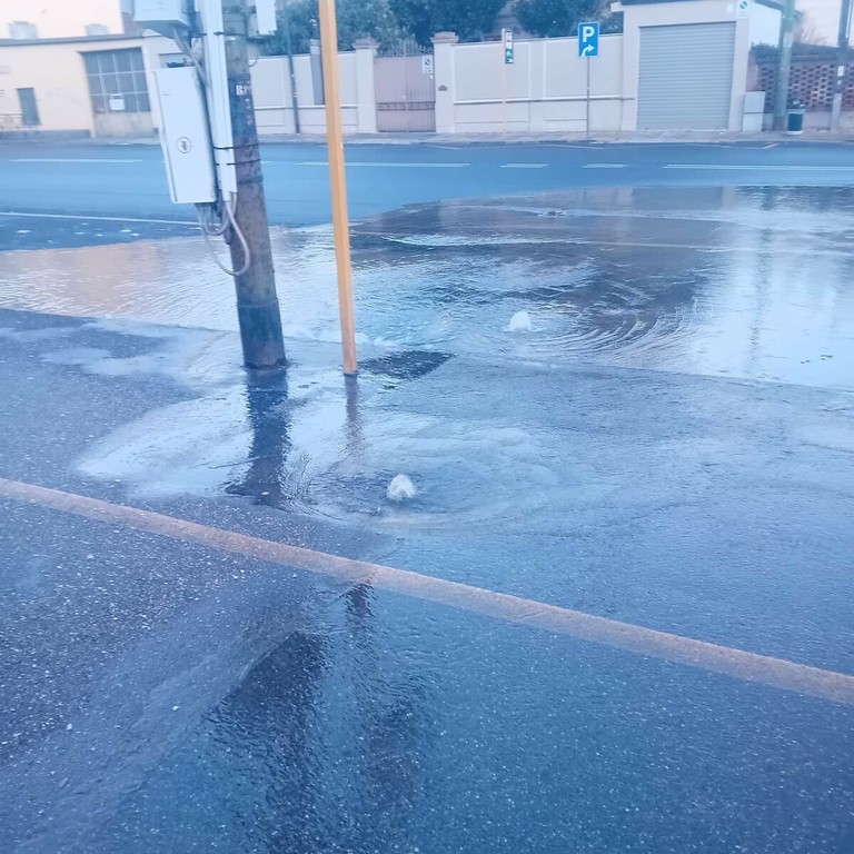 L’allarme è scattato nelle prime ore del mattino, quando l’acqua ha iniziato a fuoriuscire copiosamente dal sottosuolo, invadendo carreggiata e marciapiedi. Sul posto sono intervenute rapidamente le squadre di Smat, che hanno delimitato la zona e avviato le operazioni per individuare e chiudere la falla.