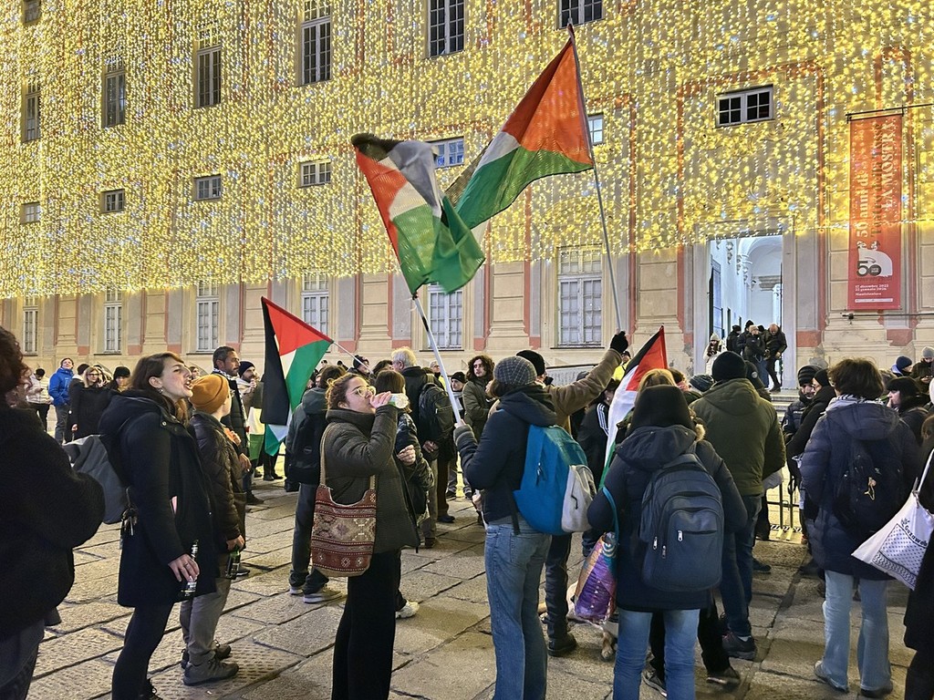 Accanto alla festa e all’entusiasmo, il passaggio della Fiamma Olimpica a Genova è stato accompagnato anche da un momento di contestazione. Nel pomeriggio, in piazza De Ferrari, alcune decine di persone si sono ritrovate con bandiere palestinesi, striscioni e slogan, dando seguito a un appello lanciato nei giorni precedenti sui social network.