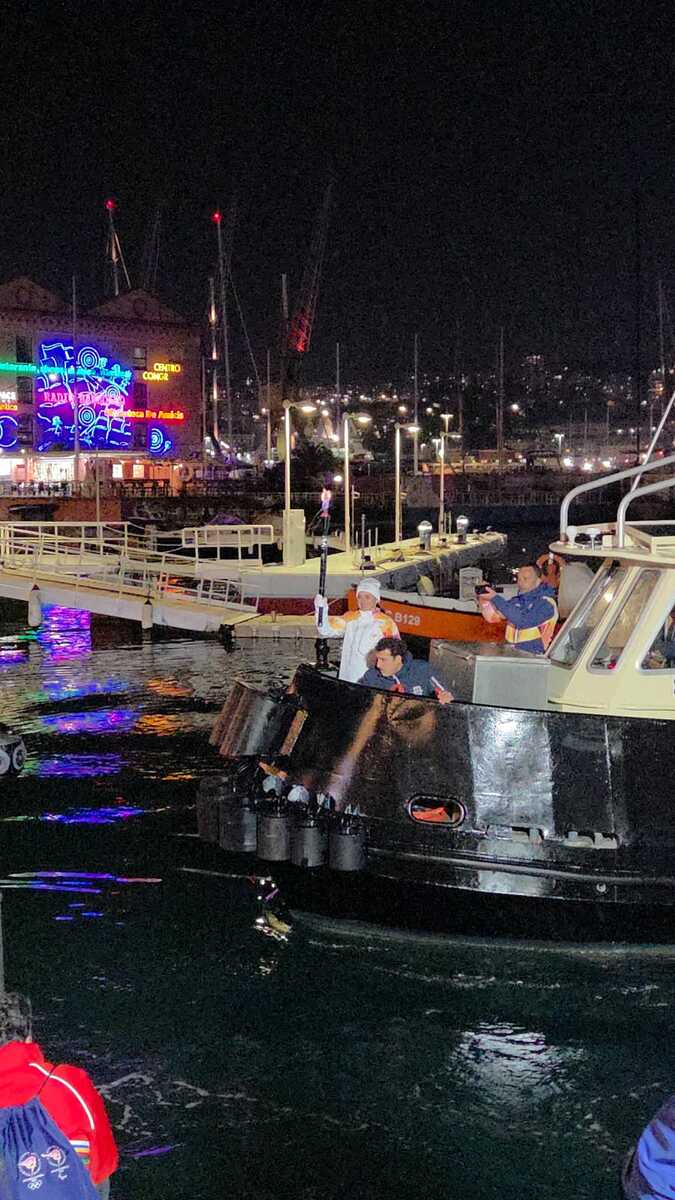 Il percorso ha toccato anche via XX Settembre, via Garibaldi e via Balbi, accompagnato da applausi, fotografie e momenti di grande partecipazione. A rendere ancora più suggestiva la conclusione della tappa genovese è stato l’arrivo dal mare dell’ultimo tedoforo: la torcia ha infatti raggiunto calata Molo Vecchio a bordo della pilotina di Rimorchiatori Riuniti, per poi approdare al Mandraccio, nel cuore del Porto Antico.