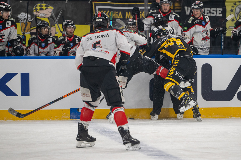 È come se i Mastini si lasciassero trascinare a fondo con voluttà e ineluttabilità dalla marea montante altoatesina: come se non avessero la forza per tentare la benché minima reazione quando le cose si mettono male. Per cinismo, agonismo, risolutezza e superiorità schiacciante in ogni centimetro di ghiaccio, il Caldaro a tratti ha fatto la figura di una squadra di Ice Hockey League contro un'altra di due spanne inferiori.