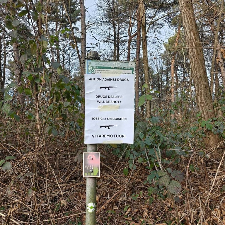 Frasi e striscioni dai contenuti minatori che arrivano da una zona, come tante altre purtroppo della nostra provincia e non solo, spesso teatro di spaccio nei boschi. Un fenomeno, quello dei pusher attivi nei nostri boschi, che nel Varesotto continua nonostante l'incessante lavoro di polizia e carabinieri, che quotidianamente svolgono retate smantellando bivacchi, sequestrando sostanza stupefacente, fermando o mettendo in fuga gli spacciatori e segnalando i clienti (leggi QUI l'ultima operazione in provincia pochi giorni fa).