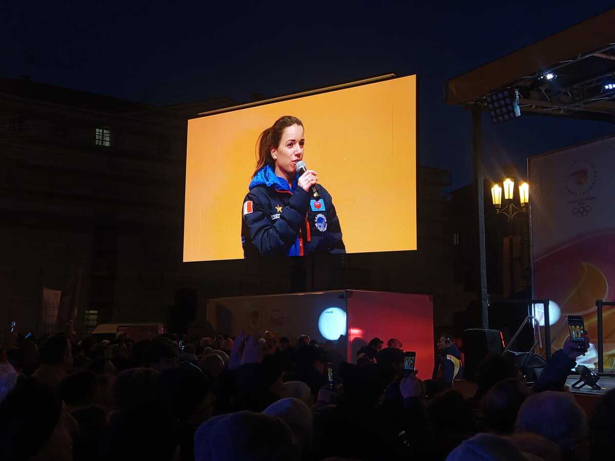 Protagonisti, tra gli altri, la sciatrice Marta Bassino, il ciclista paralimpico Diego Colombari, il pilota Nicola Dutto, la marciatrice Elisa Rigaudo che ha acceso il braciere. Grandi personaggi sportivi, scelti per la loro capacità di incarnare lo spirito olimpico. Una folla viva composta da curiosi, appassionati, autorità e sindaci del territorio ha vissuto l'evento con grande emozione.