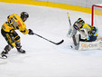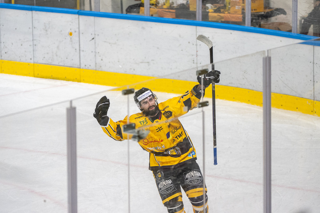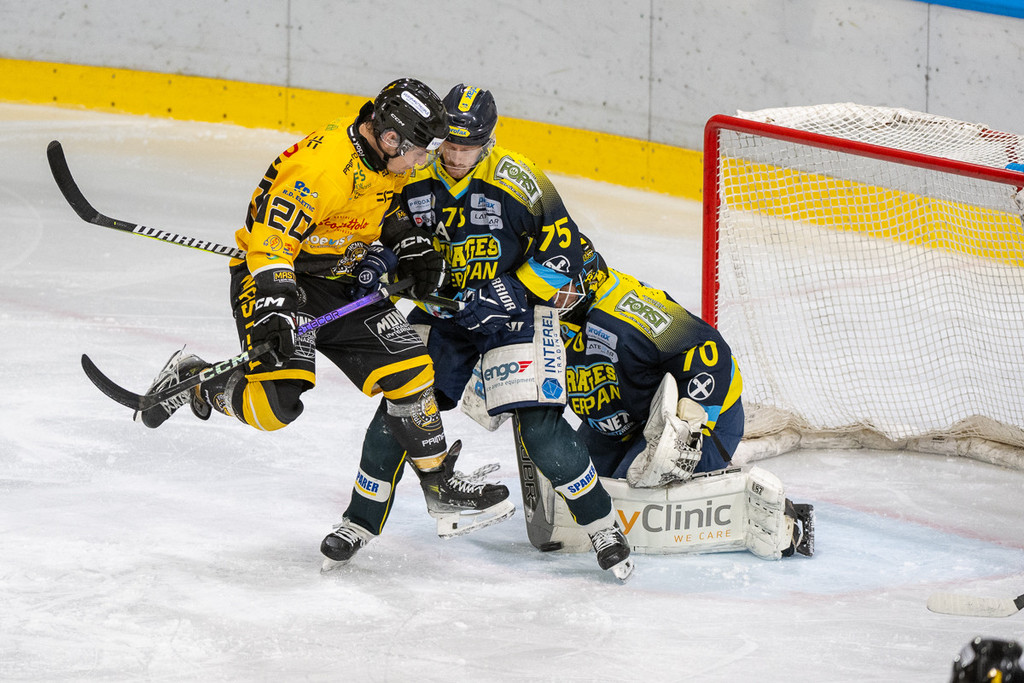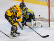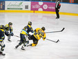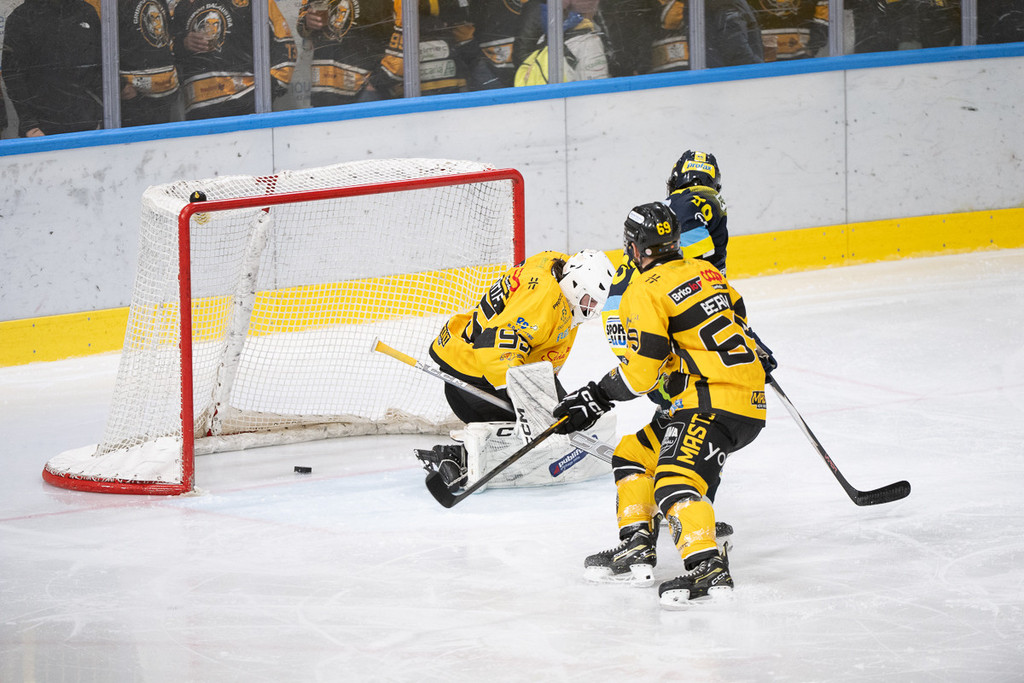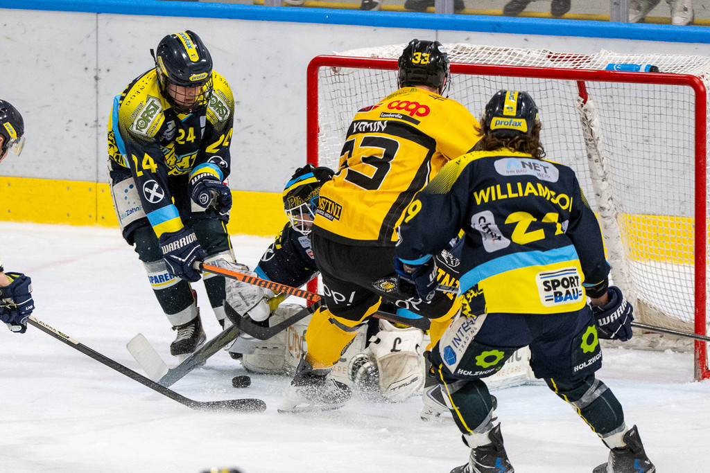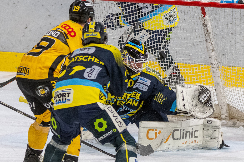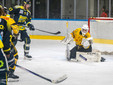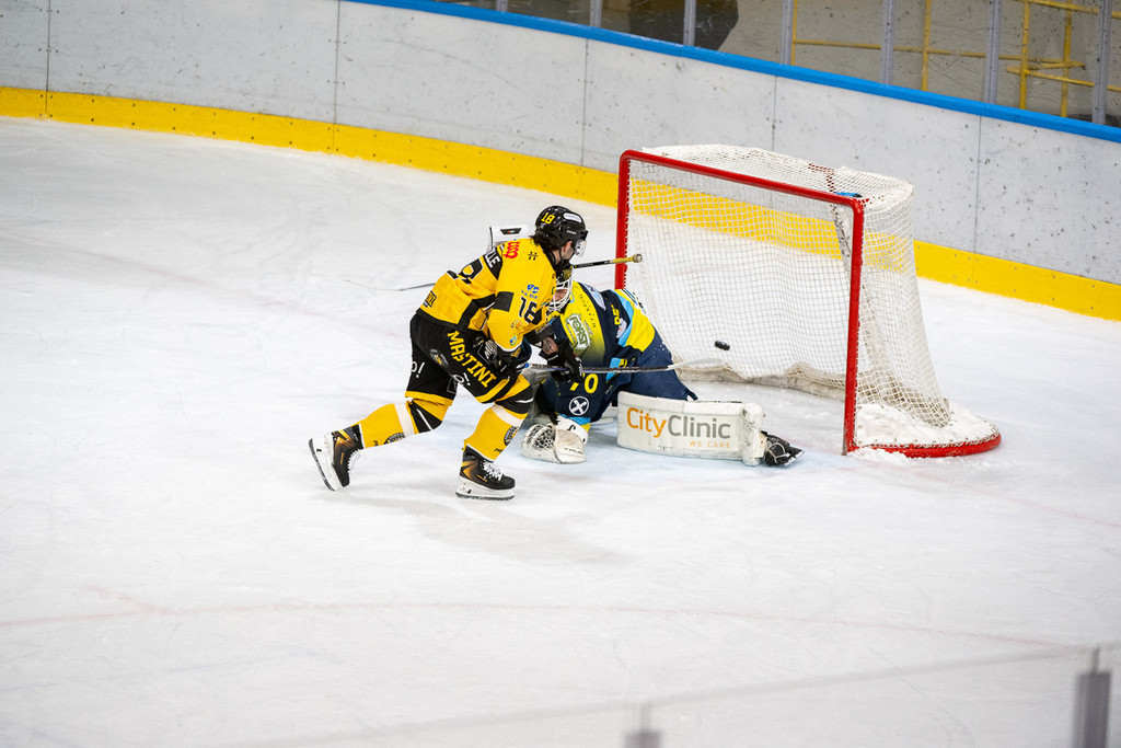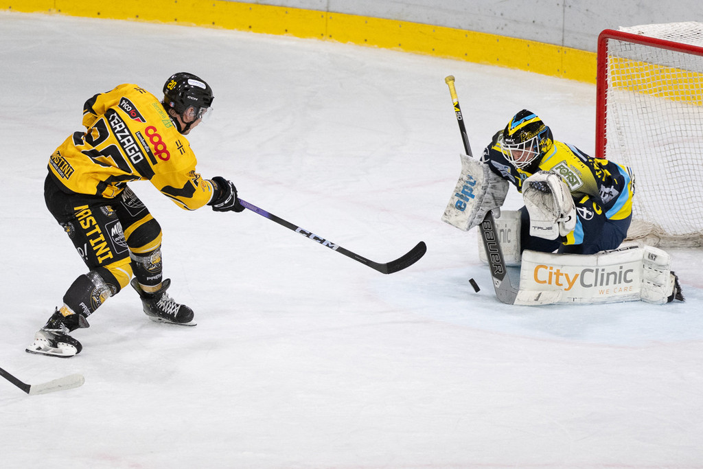 Il sottosopra e il cielo giallonero in un primo tempo folle. Il fondo di 8 minuti in superiorità (1'36" in 5 contro 3), dopo lo svantaggio dello 0-1 al primo tiro ospite subito da Pardatscher (tocco sotto porta), senza una vera occasione da gol, anzi rischiando anche lo 0-2 e, poi, in un lampo l'estasi e tutta la follia e la bellezza dell'hockey. Il cielo di due gol gialloneri in 21 secondi in inferiorità numerica, uno su un rigore preso e trasformato da Bastille (1-1 con disco nell'angolino dopo aver spiazzato il portiere), un altro su un magistrale contropiede di Terzago che ruba il disco e parte dalla blu per il 2-1, quindi il tris ancora di Bastille su numero a destra di Buono, che fa sedere mezzo Appiano, smarca Ghiglione per l'assist del 3-1 giallonero in nemmeno tre giri di lancetta. Poi ci pensano Eruzione e Williamson con una grande azione a riaprire tutto: 3-2. Pazzie da hockey.