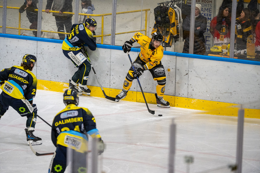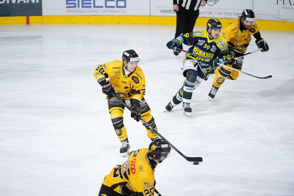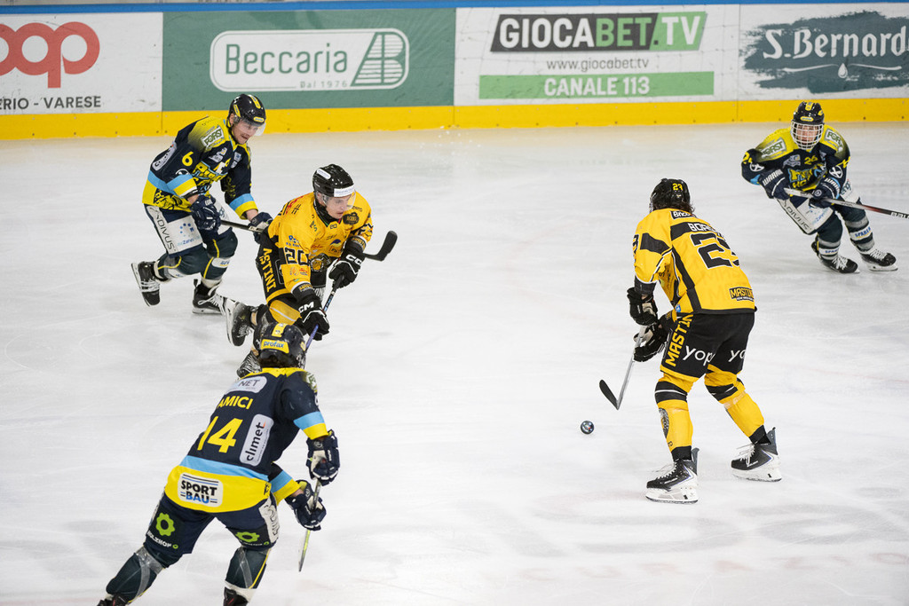 Prima di tutto, silenzio in sala: parte la copertina del campionato del Varese. Raphael Bastille intercetta il disco dietro la blu difensiva con il Varese in inferiorità numerica e, avanzando come una falce che trebbia il fieno, tenendo botta al ritorno dei difensori, si accentra e, sotto la nord, mette tra la spalla del portiere e la traversa il disco del quinto gol del Varese, il più bello e folle, da orgasmo. Viene giù la curva, viene giù tutto, vengono giù anche gli dei gialloneri. Impossibile, eppure vero. È il 5-2 di un secondo tempo di assedio totale altoatesino - c'è anche da annotare una clamorosa traversa, palo, linea di Roach - e resistenza semieroica del Varese, per 8 minuti su 20 in inferiorità (anche in 3 contro 5 per 2 minuti), asserragliato davanti a uno strepitoso Pippo Matonti (una parata su Graf è da strapparsi i capelli, e poi quegli spostamenti di porta che ricordano la leggenda appena andatasene da Varese), dopo che Andrea Schina aveva scagliato una delle sassate per cui l'amiamo dalla sua mattonella a inizio tempo per il 4-2. È un Varese da lotta nell'arena, un Varese con Re e Schina da applausi là dietro, un Varese dove il talento di Bastille è libero, selvaggio, avvolgente e feroce allo stesso tempo.