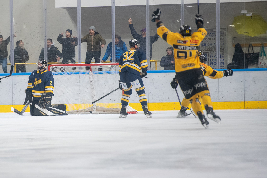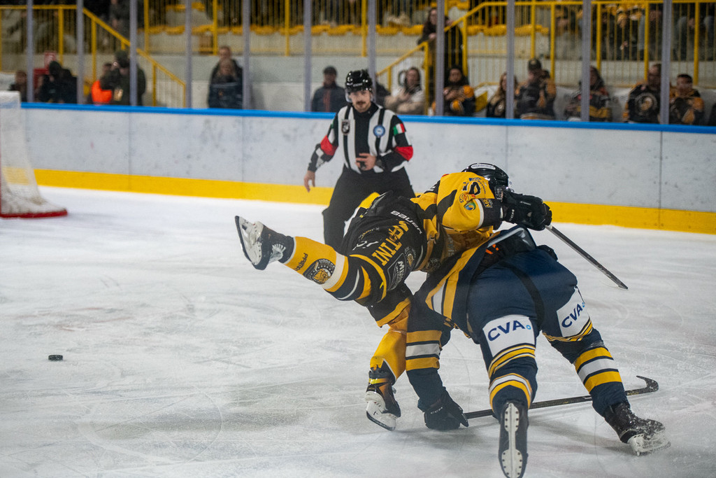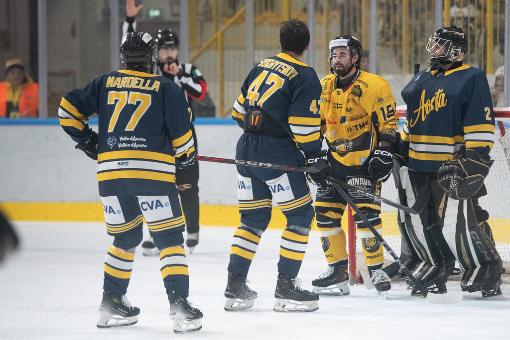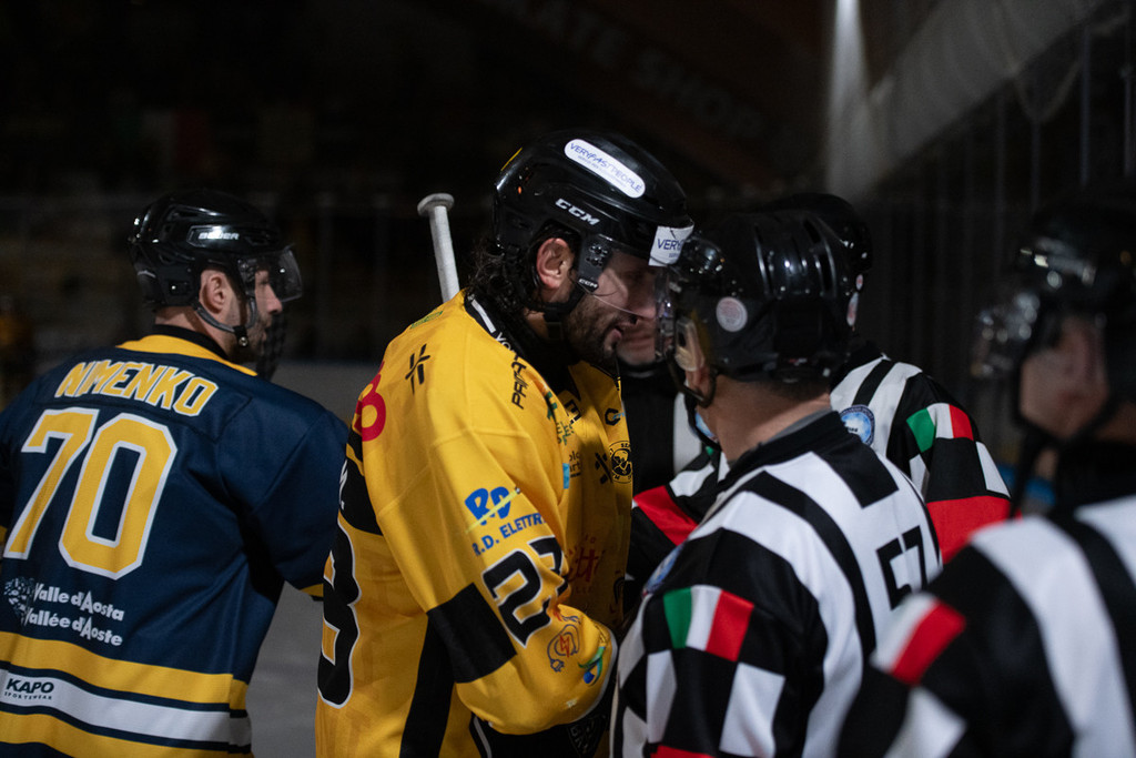 Poi, a fare la differenza, sono stati anche il gol regolare del 2-2 annullato a fine primo tempo a Bertin, i 6 minuti di power play del secondo periodo non sfruttati dalla squadra di Da Rin, quando era sotto 2-1, il terzo gol ospite subito in ripartenza - con disco sotto i gambali di Pisarenko - nel terzo periodo appena 19 secondi dopo il 2-2 di Marcello Borghi, meritatamente mvp, e la sensazione che la squadra di Da Rin avrebbe potuto continuare ad essere superiore e dominare per settimane per segnare le stesse reti che gli aostani, appena sentivano l'odore del sangue, hanno saputo insaccare nelle rare opportunità costrite. Chiamali cinismo, concretezza e un pizzico di fortuna (Makinen ha provato a riaprire i giochi sul 3-4 a 2'18" prima della rete a porta vuota di Mc Nally, stasera inghiottito, come Dubé, dall'ottima difesa dei Mastini).