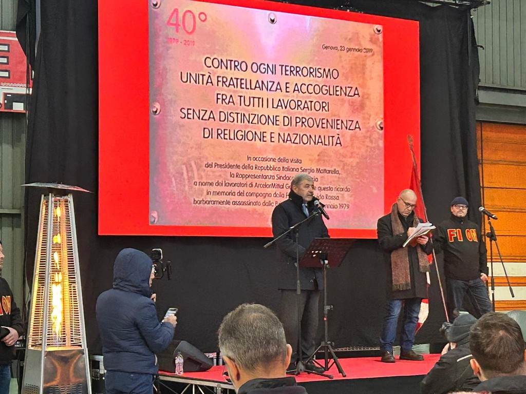 Il presidente ha poi aggiunto: "Chi reclutava terroristi nei luoghi di lavoro non rispettava l’ambiente di lavoro stesso: la testimonianza di Guido Rossa ci ricorda quanto siano fondamentali il coraggio civile, il rispetto delle regole e delle persone". Bucci ha quindi affrontato il tema del futuro dello stabilimento di Cornigliano e del polo siderurgico genovese, ribadendo la volontà di mantenerlo e rafforzarlo, richiamando il lavoro svolto insieme a comitati e realtà del territorio e l’attesa per le decisioni del nuovo investitore sul forno elettrico, sottolineando che «la priorità resta l’acciaio".