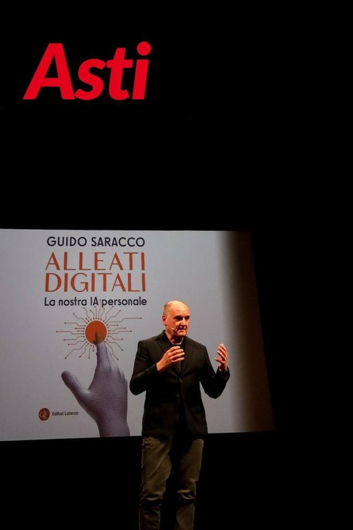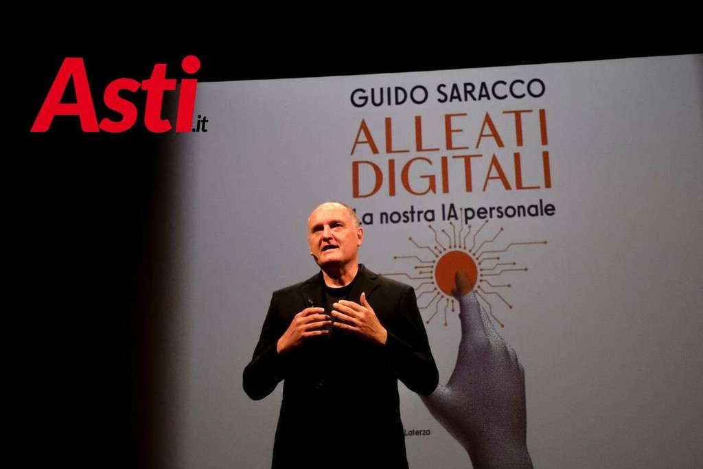 Un incontro-spettacolo per interrogarsi su chi siamo e su chi potremmo diventare, nell’epoca dell’Intelligenza Artificiale. Questo pomeriggio, al Teatro Alfieri di Asti, la Fondazione Cassa di Risparmio di Asti, in collaborazione con il Comune di Asti, hanno ospitato la presentazione del libro “Alleati digitali. La nostra IA personale” di Guido Saracco, presidente del Polo Universitario Asti Studi Superiori, ex rettore del Politecnico di Torino ed ora docente, pubblicato da Editori Laterza.