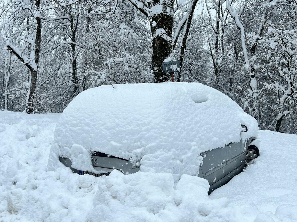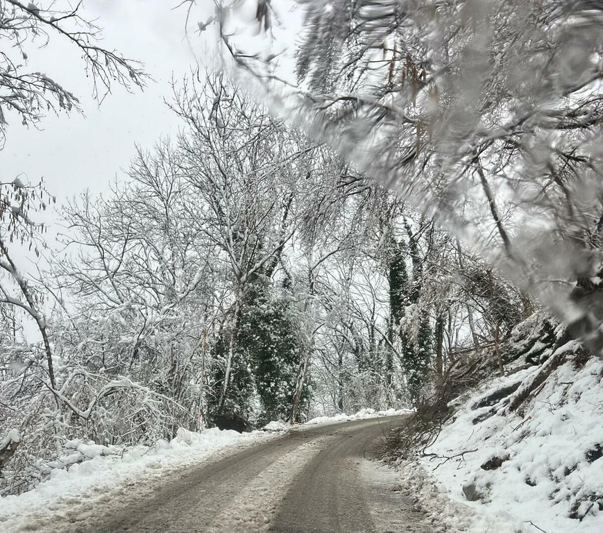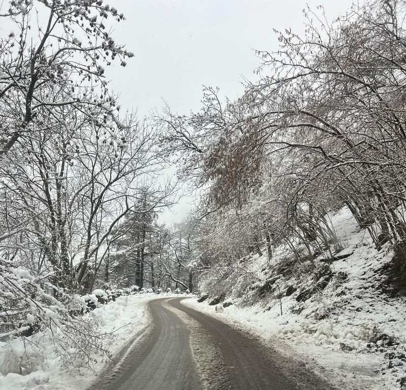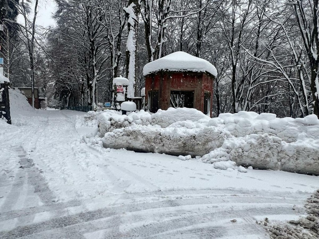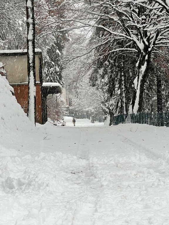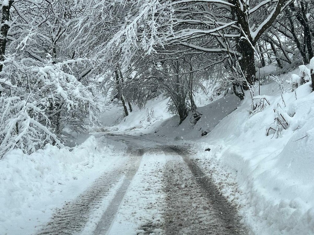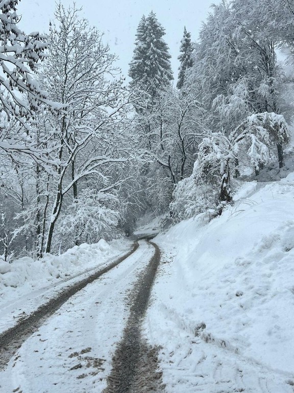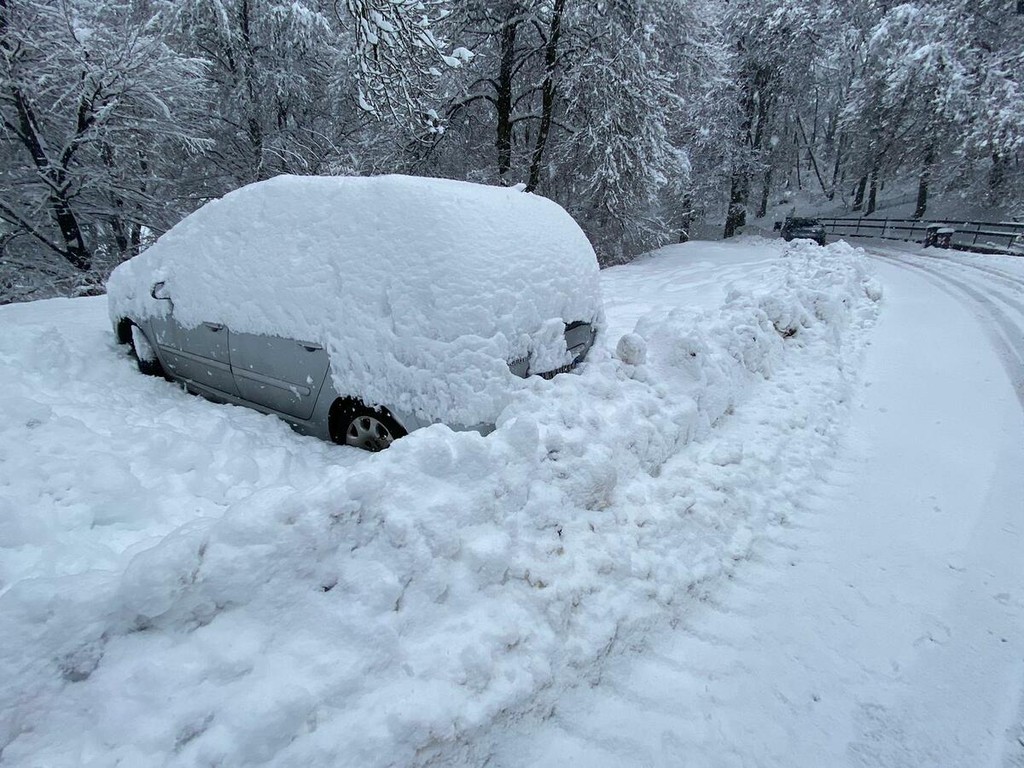 La strada imbiancata, dove fa spola uno spazzaneve, è percorribile e, prima di arrivare in vetta, volgendo lo sguardo verso il grande albergo si scorge una figura di donna in lontananza avvicinarsi lentamente alla sagoma del gigante addormentato. Poi, più su, qualche rara auto di curiosi in cerca di ispirazione e poesia, mentre la dama bianca accarezza uomini e cose, unendoli in un abbraccio tenero e in una cartolina da conservare capace, per chi sa ancora stupirsi, di farci tornare bambini. Quando la magia della neve era attesa, puntuale e benvenuta.