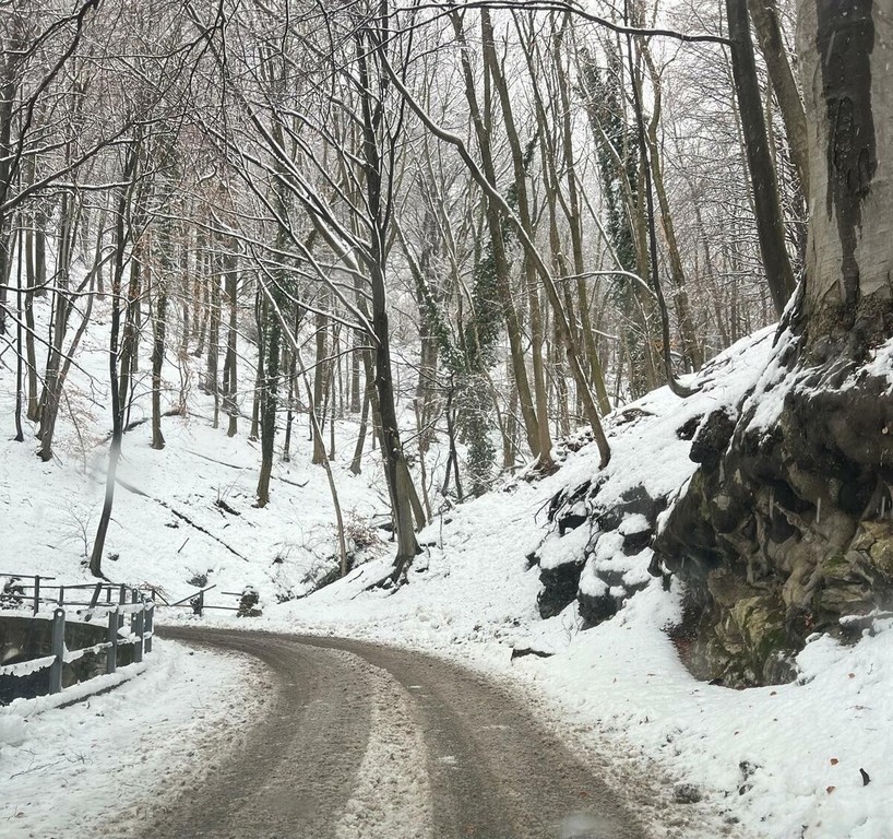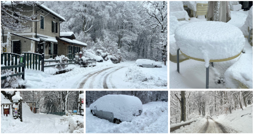 Circa 30 centimetri di manto soffice ammantano il Campo dei Fiori in un paesaggio che, salendo dal bivio verso il Sacro Monte, cambia all'improvviso appena superata la soglia altimetrica suddetta, come se esistesse una porta tra le dimensioni: dietro pioggia, davanti fiocchi di neve grandi come balocchi di Natale con la temperatura di qualche grado sopra lo zero.