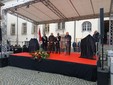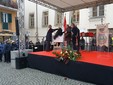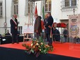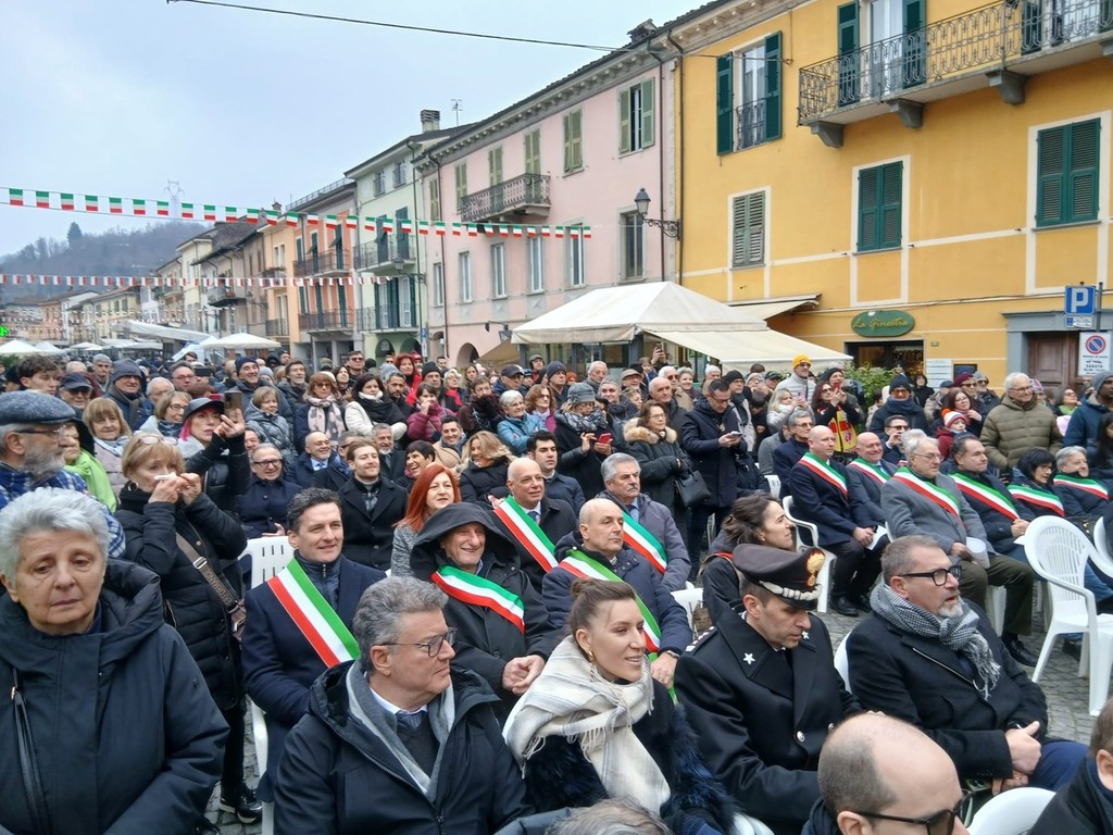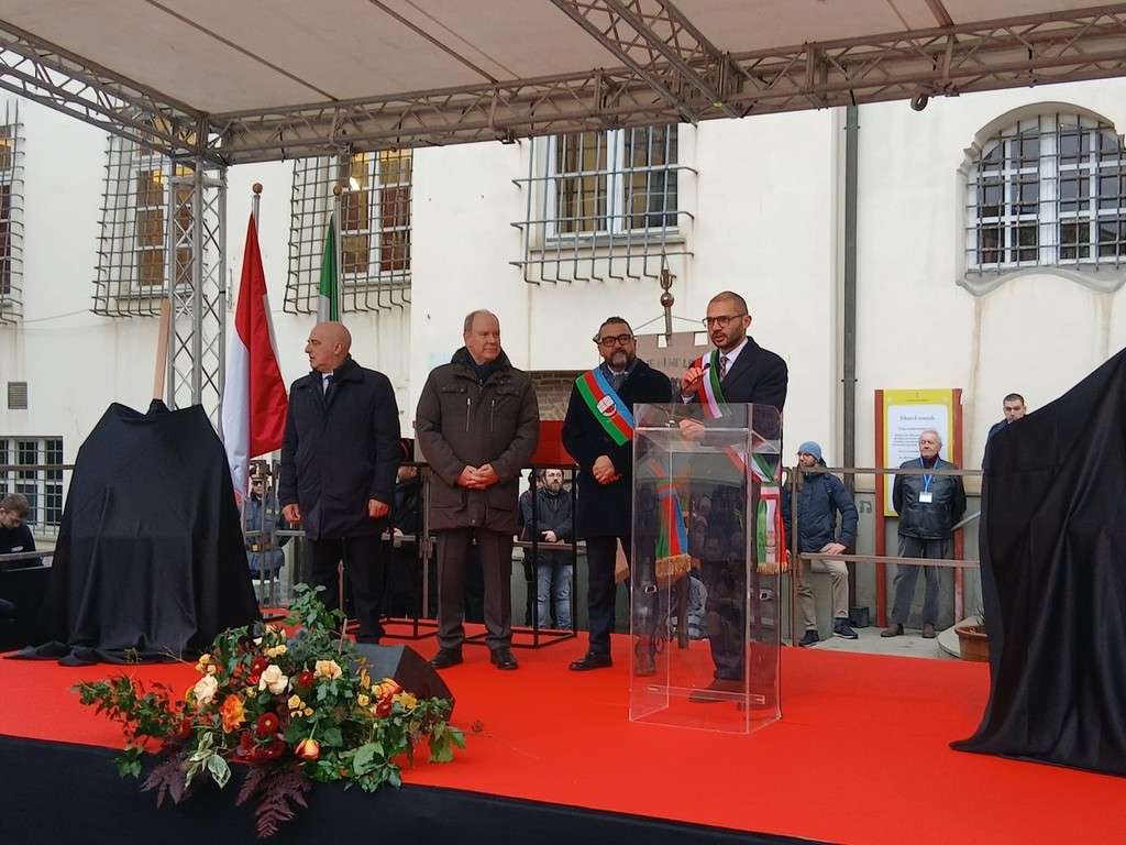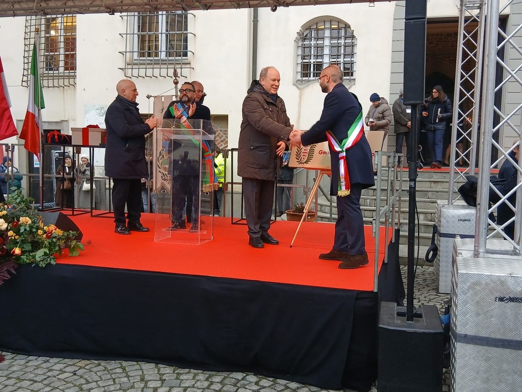 Alle 11 circa si è tenuta la cerimonia ufficiale sul palco: gli interventi istituzionali, tra questi anche quelli dell'onorevole Gianni Berrino e dell'assessore regionale Paolo Ripamonti, la scopertura delle targhe commemorative e lo scambio dei doni con il Principe hanno segnato uno dei momenti più solenni della mattinata.