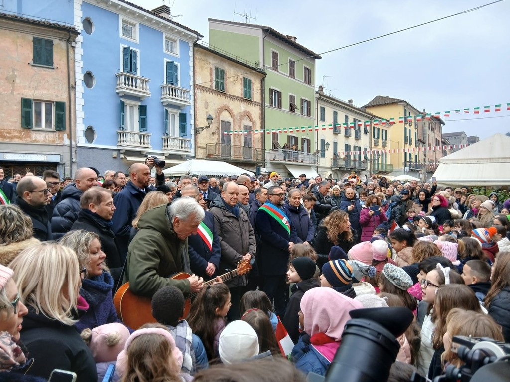 La visita, scandita da momenti istituzionali riservati alle delegazioni ufficiali per ragioni di protocollo e sicurezza, ha toccato alcuni dei luoghi simbolo del paese, come il castello e villa Scarzella. Il cuore dell’incontro con la comunità millesimese si è svolto in piazza Italia, intorno alle 10.30, dove cittadini, associazioni e scuole del territorio hanno preso parte a un evento che ha coinvolto l’intera collettività.