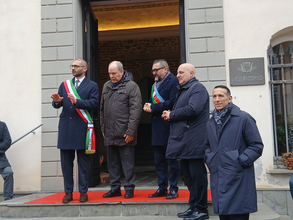 Il Principe proveniente da Ceva, é stato accompagnato da una delegazione composta dall'ambasciatrice di Monaco in Italia Anne Eastwood, dal colonnello Martin David, Fulvio Gazzola, presidente dell'Associazione Siti Storici Grimaldi in Italia, e Thomas Blanchy, vicedirettore dell'Archivio Storico del Principato.