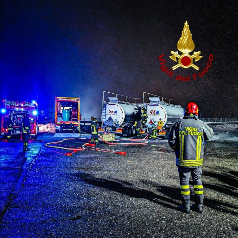 A partire dalle ore 18 di ieri, 8 squadre dei Vigili del fuoco del comando di Torino, per un totale di 24 unità, sono intervenute sulla A32 a Chiomonte presso la galleria Cels, per una cisterna contente sostanza ADR, che si è staccata durante il transito dalla motrice dalla quale veniva trainata.