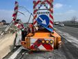 Una vettura ha travolto il mezzo del cantiere mobile. Nessun è rimasto ferito, ma si registrano lunghe code e traffico in tilt.