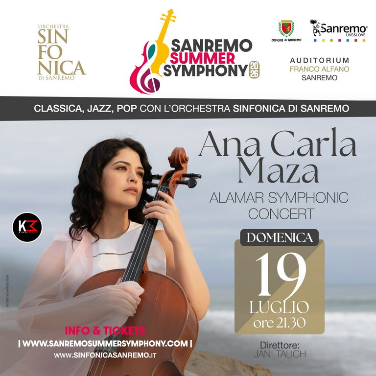 Alla vigilia dell’inizio del Festival di Sanremo, che vedrà l’Orchestra Sinfonica di Sanremo protagonista sul palco del Teatro Ariston, la città della musica alza il sipario sulla quinta edizione della Sanremo Summer Symphony 2026, svelata eccezionalmente in anteprima. Un segnale forte, che conferma la crescita e l’ambizione di una rassegna ormai centrale nel panorama culturale estivo italiano. La manifestazione, nata dalla collaborazione tra il Comune di Sanremo, la Fondazione Orchestra Sinfonica di Sanremo, gli operatori turistici e le realtà culturali del territorio, porterà dal 5 luglio al 21 agosto dieci concerti di altissimo livello nella cornice dell’Auditorium Franco Alfano, confermato come palcoscenico di riferimento del Ponente ligure per la grande musica dal vivo. Artisti italiani e internazionali, prime assolute, grandi tributi e contaminazioni tra generi saranno il filo conduttore di un cartellone trasversale e di qualità.