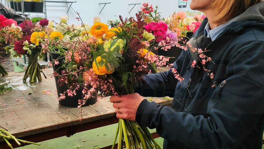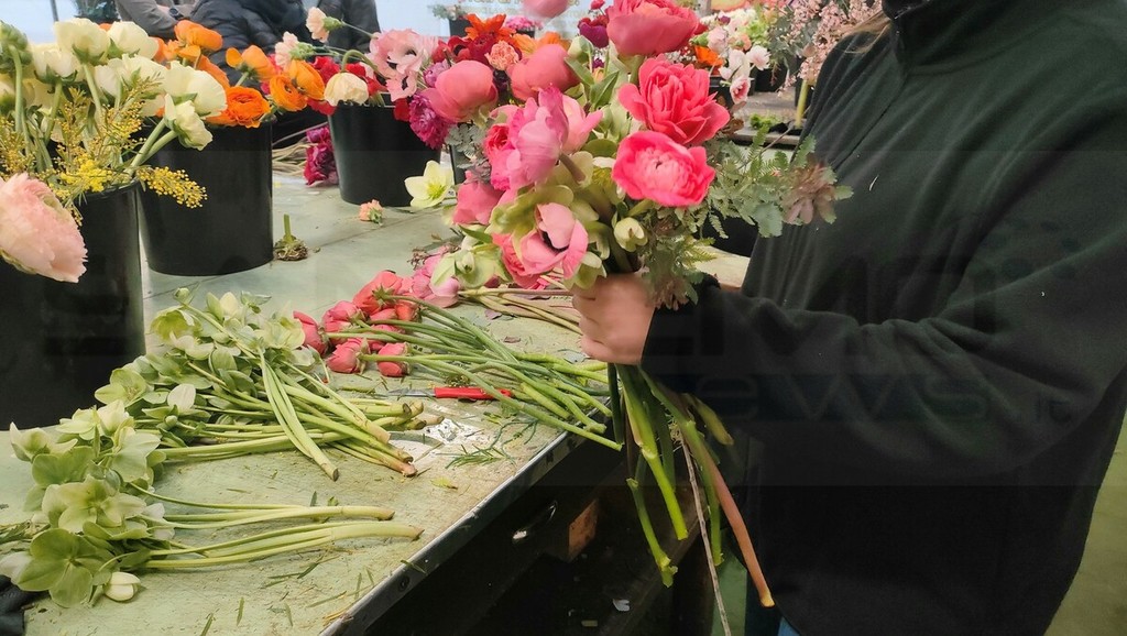 Dove e come nascono i bouquet del Festival? SanremoNews accende un faro sulla squadra di flowers designer che, ogni giorno, lavora sodo per creare gli omaggi floreali destinati a cantanti e ospiti della gara canora. In un magazzino del mercato dei fiori le abili mani e la creatività della sanremese Jessica Tua, coordinatrice del team, della vincitrice del concorso Bouquet Festival 2026, Giorgia Mozzarelli, e degli altri fioristi impegnati “sfornano” fino a 50 composizioni al giorno, il doppio per la serata di oggi, quella delle cover con i 30 concorrenti affiancati da altri artisti.