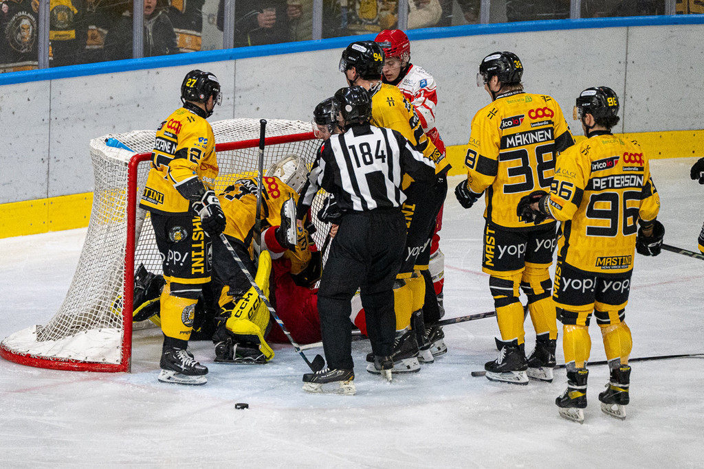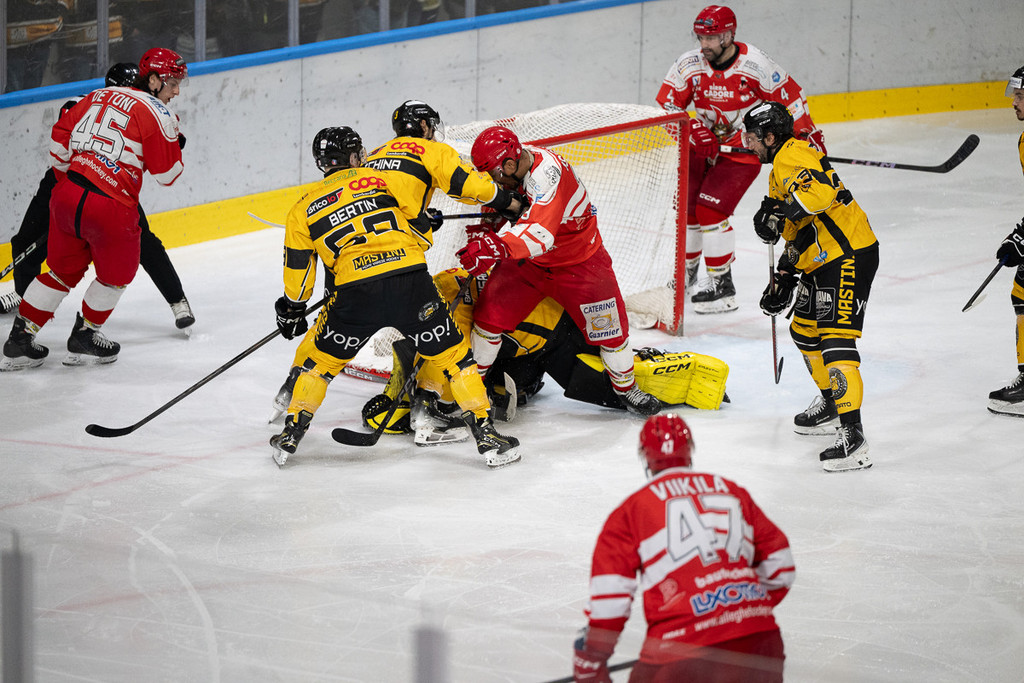 Dal 4-2 in poi, ma anche prima, è battaglia. Con quella scena pazzesca di Viikila scaraventato nella porta di Pisarenko e la rissa tra i due nella gabbia varesina inclinata. È la prima volte che vediamo qualcosa di simile. È il fuoco con cui il portiere ucraino incenerisce i cuori gialloneri, facendoli suoi. Varese cattivo, aggressivo. Varese Mastino. Dopo che Ghiglione da solo si era presentato per il 5-2, ci pensa Makinen da fuori in power play a sigillare il match. Peterson, tra i migliori, si prende anche un rigore che sbaglia dopo avere avuto altre occasioni per segnare che lo hanno sempre visto nel vivo della partita e del gioco (avesse segnato, avrebbe potuto giocarsi il ruolo di Mvp). Poi, tra grandi tensioni anche nel palazzo nei pressi del settore alleghese e il 5-3 finale ospite in power play, i premi Coop e Agricola, grandi amici dei Mastini, c'è stato spazio solo per gli applausi. La battaglia è appena iniziata: non finirà qui, e non finirà presto.