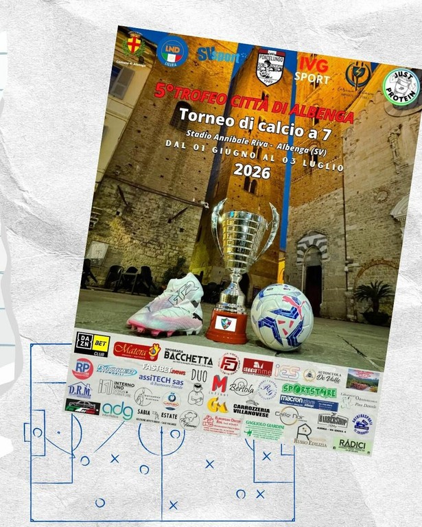 L'estate albenganese si apre ufficialmente con la quinta edizione dell'ormai immancabile trofeo cittadino. Dal 1 giugno fino alla finalissima del 3 luglio, il manto erboso dell'Annibale Riva ospiterà un intenso torneo di calcio a 7. Un mese di sfide serali dove tecnica e appartenenza si mescolano per decretare la squadra regina del compensorio.