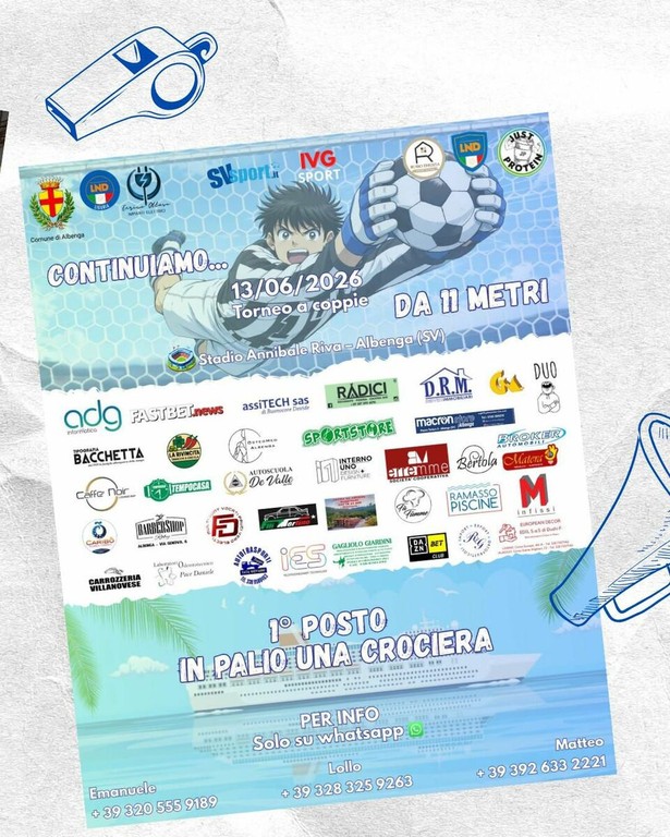Il 13 giugno, sempre nella cornice dell'Annibale Riva, la pressione salirà alle stelle con un format dedicato agli specialisti del dischetto. Si tratta di un torneo a coppie incentrato sui calci di rigore: un duello di nervi saldi e precisione chirurgica dove la posta in gioco è altissima. Per la coppia vincitrice, infatti, c'è in palio una fantastica crociera.