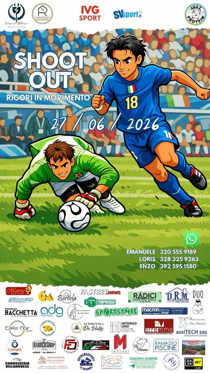Il 27 giugno il format si fa ancora più dinamico e spettacolare. Lo "Shoot Out" porta in campo la sfida dell'uno contro uno: il giocatore parte palla al piede verso la porta, sfidando il portiere in un tempo limitato. È il connubio perfetto tra velocità e freddezza, un evento pensato per regalare spettacolo puro sia ai partecipanti che al pubblico.