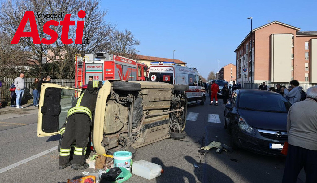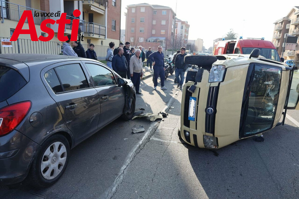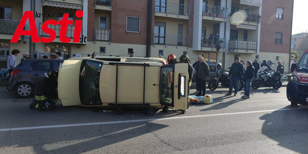 Un violento incidente stradale si è verificato nel primo pomeriggio ad Asti, precisamente in via Torchio. Intorno alle 15.40, per cause ancora in fase di accertamento, una Fiat Panda ha urtato una Opel Corsa, finendo per ribaltarsi sulla carreggiata a seguito del forte impatto.