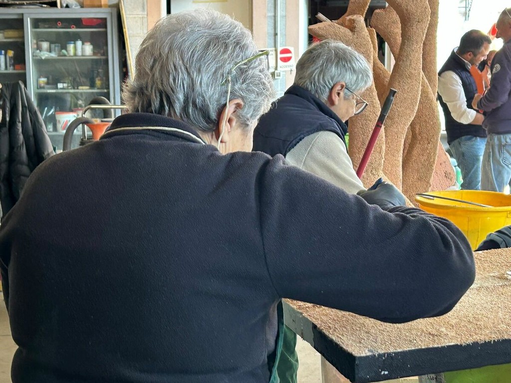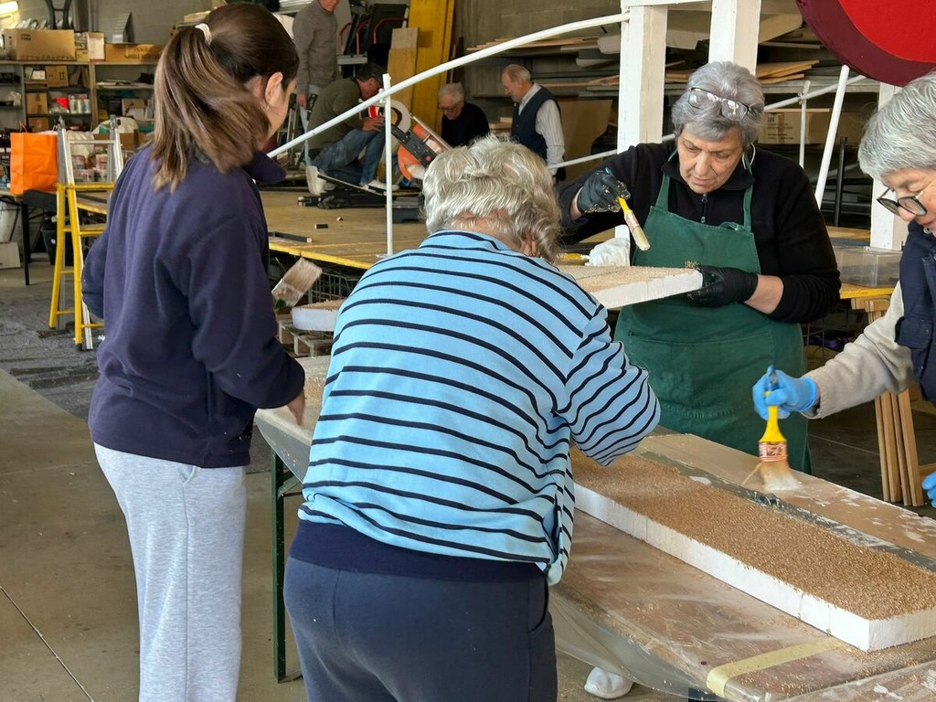 Nel laboratorio si vede tutto questo. C’è chi salda, chi monta, chi prepara le composizioni floreali. Le volontarie – spesso mamme, zie, nonne – portano con sé anche le più giovani, in un passaggio di testimone che è insieme tecnico e culturale. “È importante trasmettere questa passione – aggiunge De Vai – perché non è scontato che in futuro ci siano sempre persone disponibili a portare avanti questa tradizione”. Un lavoro che è fatica, ma anche orgoglio. “Quando finisci il carro e lo vedi completo, la soddisfazione è incredibile”, racconta uno dei volontari. “Siamo un gruppo affiatato, ognuno fa la sua parte. Adesso arriva la settimana più dura, quella in cui si lavora tutto il giorno per mettere i fiori. Ma è anche la più bella”.