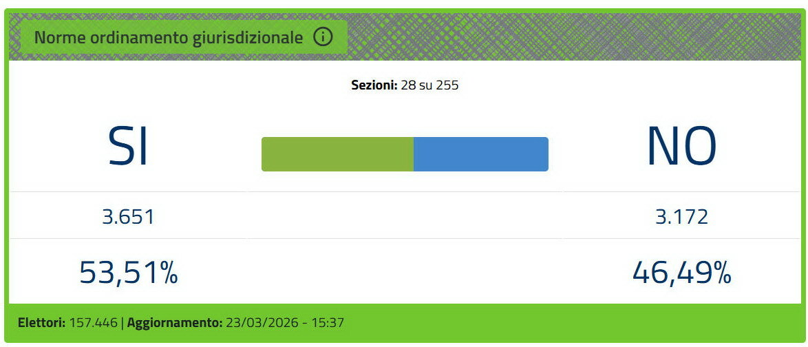 Intanto c’è già il primo dato, seppur ancora relativo a 28 sezioni su 255, e vede il ‘Sì’ prevalere con il 53,1%, mentre il ‘No’ è al 46,49%. A livello nazionale sembra prevalere il 'No'.