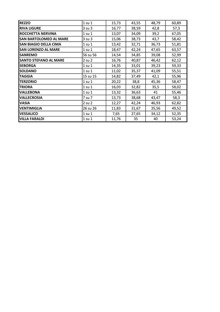 Tra i centri urbani più importanti troviamo Imperia con il 60,06%, Sanremo con il 52,98%, Ventimiglia al 49,52%, Taggia al 55,96%, Bordighera al 57,46% e Vallecrosia, interessata anche dal referendum sul nome della città, con il 53,80%. C’è ovviamente grande interesse per conoscere il risultato ma, nella nostra provincia, c’è un tema in più: quello legato al referendum di Vallecrosia sul nome della città. Il quorum è stato raggiunto già ieri e, nel pomeriggio, si saprà il risultato. I dati, sia per il quesito nazionale che per quello vallecrosino, saranno resi ufficiali in poco tempo anche perché lo scrutinio sarà semplice e veloce.