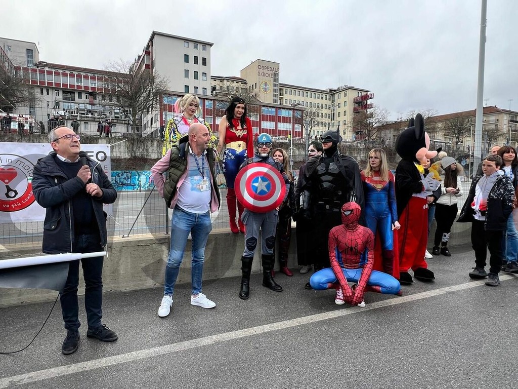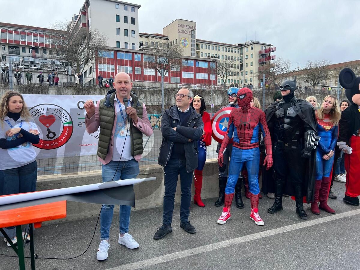 Immancabili i Supereroi, che hanno esposto un grande cartello per dire ai piccoli ricoverati che i veri eroi sono loro. E poi l'associazione AlterLego di Cuneo e i vigili del fuoco, con i mezzi e le sirene, presenti anche come associaizone Angeli in Moto.