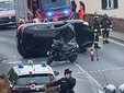 Ancora in fase di accertamento la dinamica del sinistro, che ha visto un'auto concludere la sua corsa cappottandosi su un fianco; secondo quanto riferito sarebbe coinvolta anche una moto.
