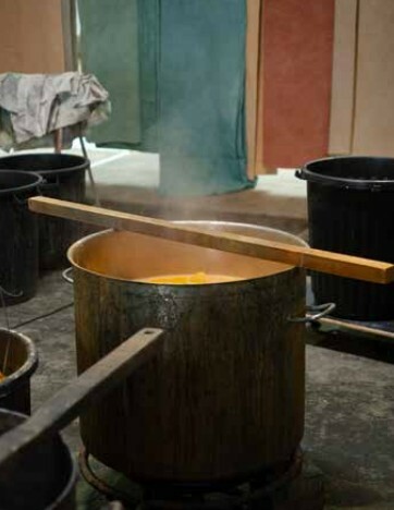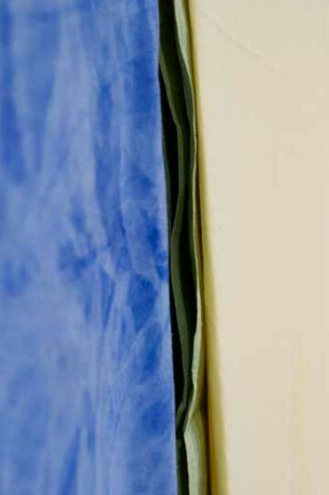 La pratica artistica di Vescovi si fonda principalmente sull’uso del tessile, esplorato come veicolo di memoria e stratificazione temporale. Cucitura, tintura e materiali semplici diventano strumenti espressivi che richiamano le tradizioni artigianali diffuse lungo le coste del Mediterraneo. Centrale è l’utilizzo di tessuti, in particolare lenzuola antiche, considerate come superfici malleabili e archivi silenziosi del quotidiano. Segnati dal tempo, trattati con pigmenti naturali o trasformati dall’intervento dell’artista, questi materiali accumulano tracce che vanno dal passato fino alle condizioni della loro esposizione attuale.
